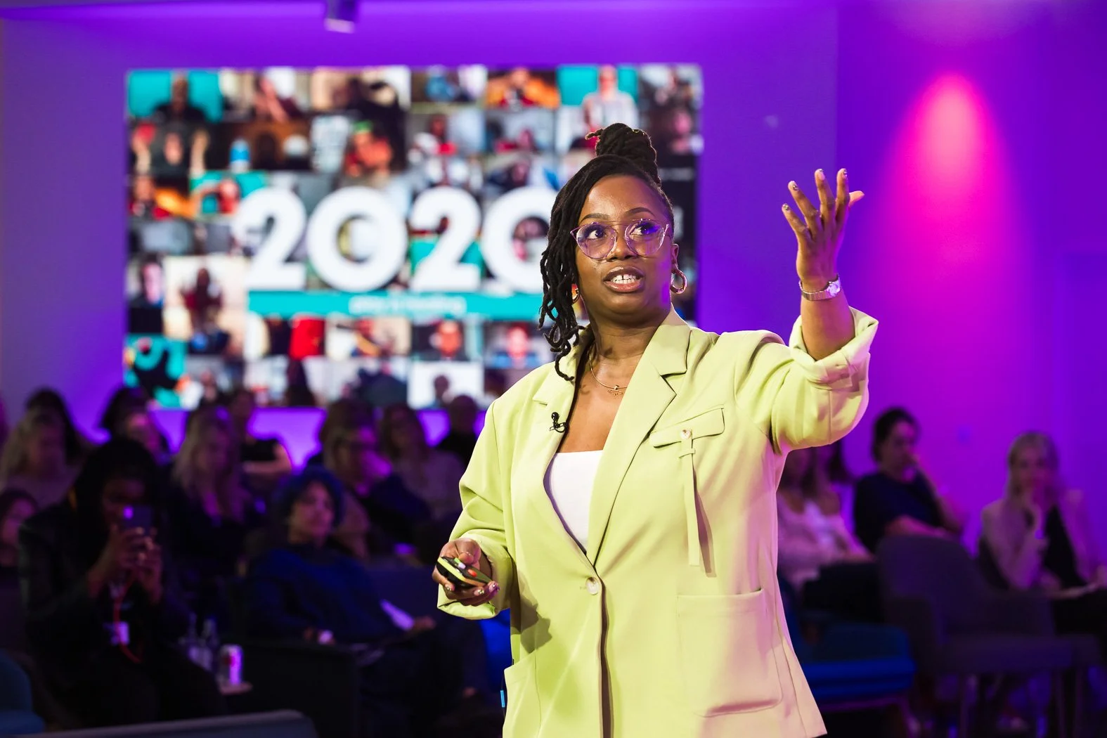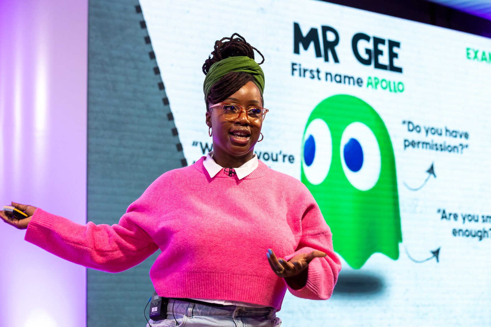 Her speaking style blends play, emotional intelligence, and sharp cultural insight to help audiences navigate real pressures: leadership fatigue, imposter syndrome, miscommunication, creative burnout, and the challenge of staying human while performing at a high level.